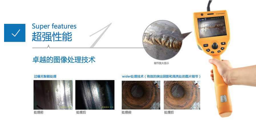 C50電控高清工業(yè)內(nèi)窺鏡運用長距離信號傳輸及導(dǎo)向傳動技術(shù),支持插入管7米,并且轉(zhuǎn)角可達120°,這一技術(shù)突破可以充分運用在管道、集箱或大型設(shè)備中。