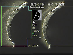 立體測量功能用于測量缺陷的尺寸或深度,比如檢查過程中發現的裂縫。重新設計的光學系統和強化技術極大地擴展了檢查面積。現在用戶可以在比傳統工業視頻內窺鏡大4倍的檢查區域中識別并測量距離為2倍遠的缺陷。立體測量功能通過準確的三角測量提供了圖像上指定點的3D空間信息,從而提供了準確的長度、深度和形狀測量。IPLEX NX專為提高準確性和畫質而設計、生產和微調,從而使檢查員可以檢測以前是要靠近才能測量的小裂縫或缺陷。