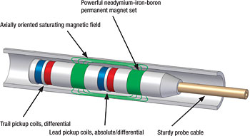 l 對線圈阻抗的變化進行測量,并利用這些變化探測管件中的缺陷。